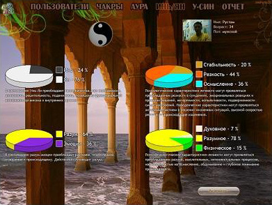 L’appareil peut obtenir des images deschakras en sept centres principaux -des entonnoirs rotatifs, de tailles, de couleurs, de phases de rotation différentes, situés par rapport aux coordonnées du corps humain selon la section dorée. Les chakras humains parlent du travail des organes et des systèmes au niveau physique, de la quantité d'énergie accumulée, de la nature de l'échange d'énergie avec le monde extérieur, de la qualité des vibrations de l'énergie elle-même, exprimée dans la couleur du chakra.